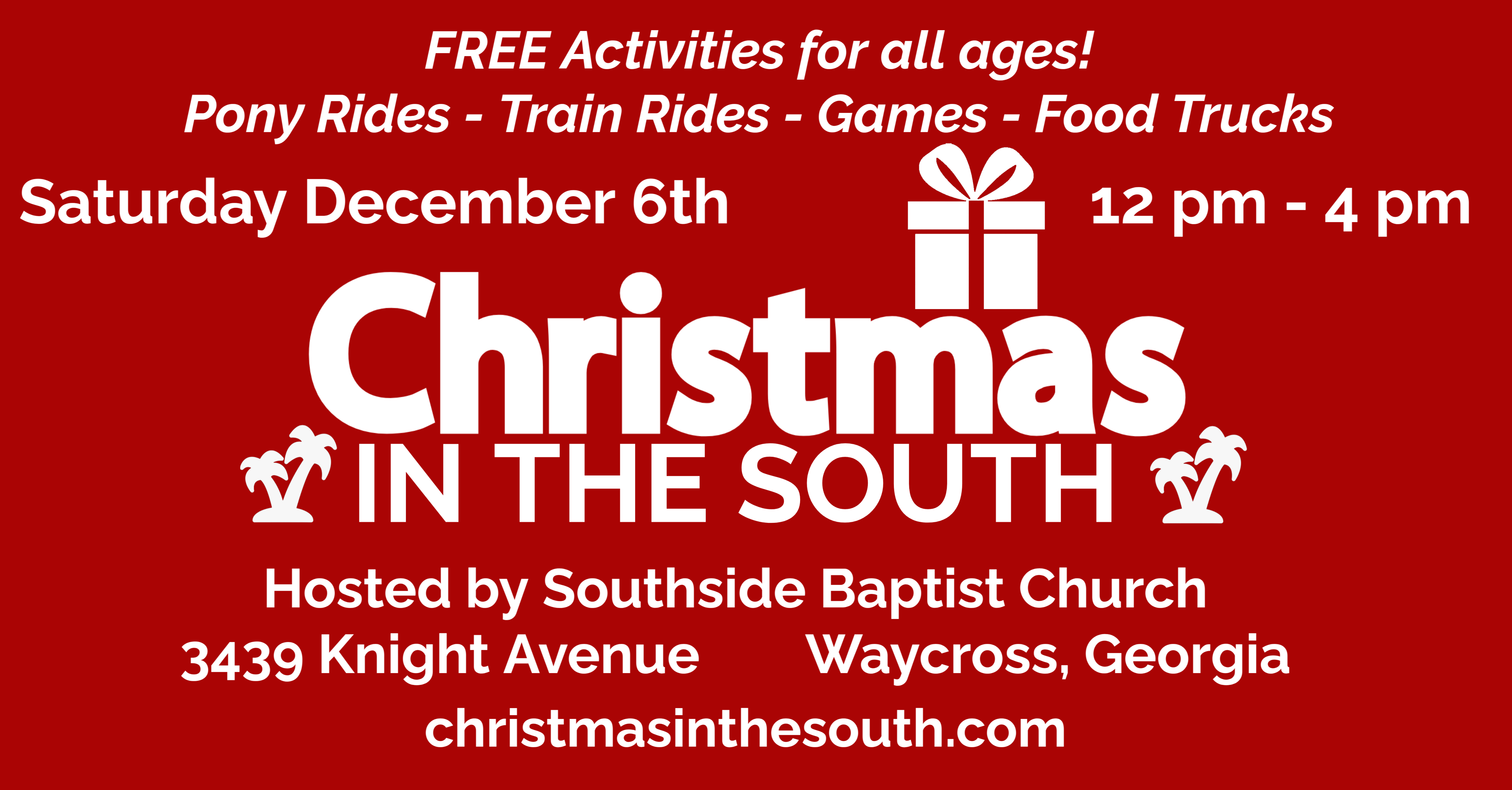Everyone is invited to be part of this great event held at the campus of Southside Baptist Church! There will be pony rides, train rides, a mechanical bull, multiple games, cake walk, prize drawings, and much much more! All activities are free for all ages! We will also have food trucks on site for food and snack purchases.